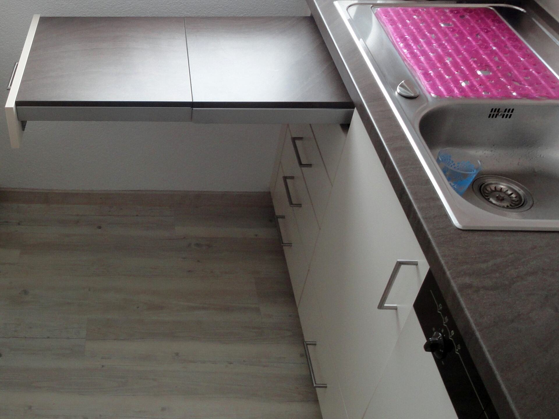 - Erweiterung der Arbeitsfläche durch Schubladenauszug - gibt es übrigens auch größer und somit auch ideal für das Wohn- und Esszimmer als Fest-Tafel